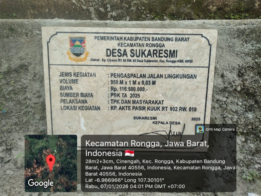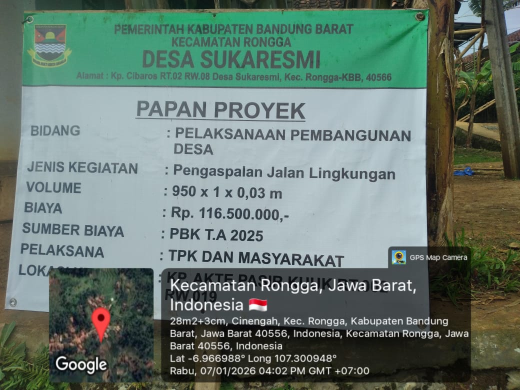 Pemerintah Desa Sukaresmi berkomitmen untuk menjalankan pembangunan ini secara transparan dan sesuai dengan spesifikasi teknis yang telah ditentukan dalam SK Bupati, guna memastikan kualitas jalan yang tahan lama bagi masyarakat.